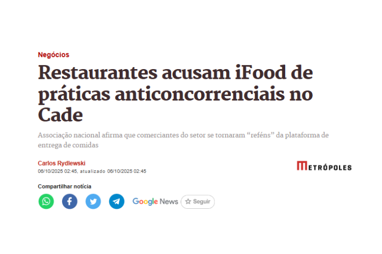 A Abrasel protocolou uma representação no Conselho Administrativo de Defesa Econômica (Cade) contra o iFood, acusando a empresa de adotar práticas que restringem a concorrência e tornam os restaurantes dependentes de seus serviços. Segundo a entidade, a plataforma “transformou-se em um ecossistema digital fechado”, utilizando sua posição dominante para impor soluções próprias de pagamento, logística e gestão.